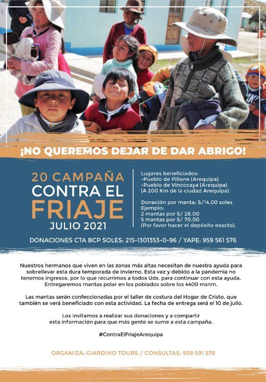 Su ayuda brindará el alivio necesario en esta grave situación de emergencia. Puede encontrar más información sobre las actividades de esta campaña aquí: www.medicos-solidarios-arequipa.com o aquí: www.facebook.com/medicossolidariosaqp/